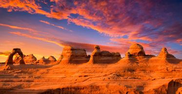 Visit Arches to discover a landscape of contrasting colors, land forms and textures unlike any other in the world. The park has over 2,000 natural stone arches, in addition to hundreds of soaring pinnacles, massive fins and giant balanced rocks. This red-rock wonderland will amaze you with its formations, refresh you with its trails, and inspire you with its sunsets